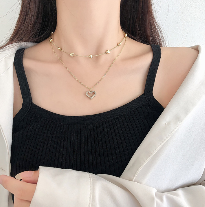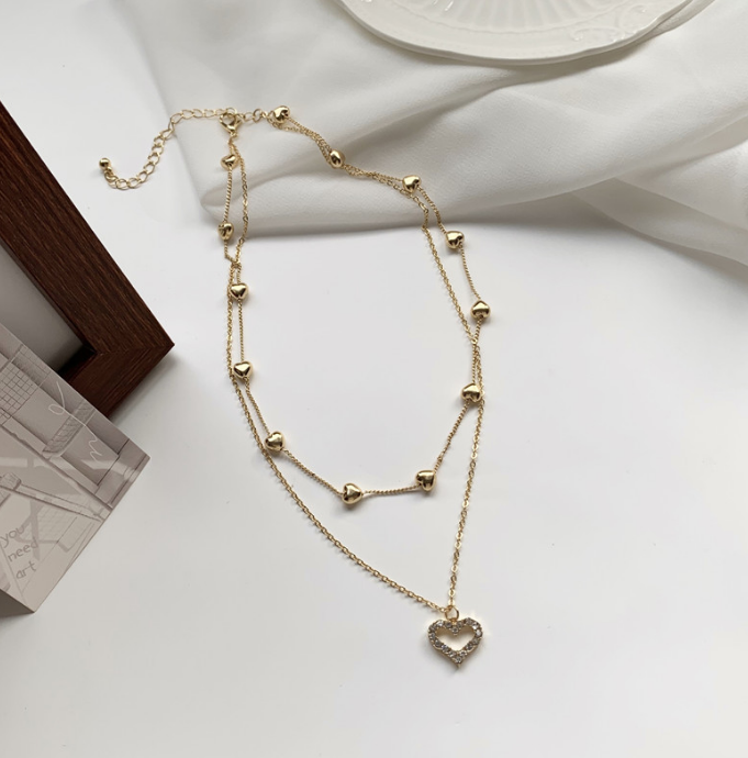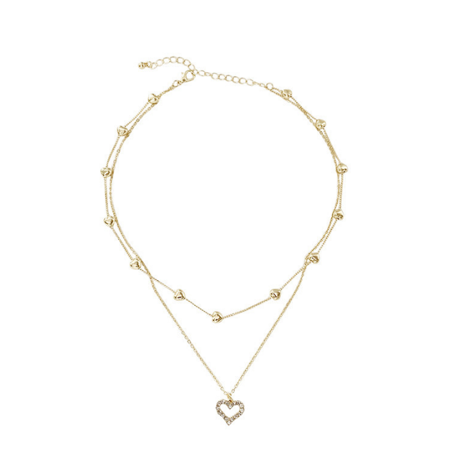 Dvojvrstvový náhrdelník „Srdce“ v odtieni zlata je jemný a romantický doplnok, ktorý spája drobné ozdoby so srdiečkovým príveskom. Vrstvený dizajn pôsobí moderne, zvýrazňuje dekolt a dodáva outfitu ženský šarm.