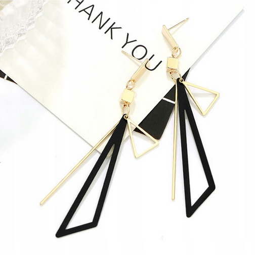 Geometrické visiace náušnice v zlatej a čiernej farbe sú moderným doplnkom, ktorý dodá vášmu outfitu štýl a eleganciu. Vhodné aj pre citlivé uši vďaka zloženiu neobsahujúcemu nikel.