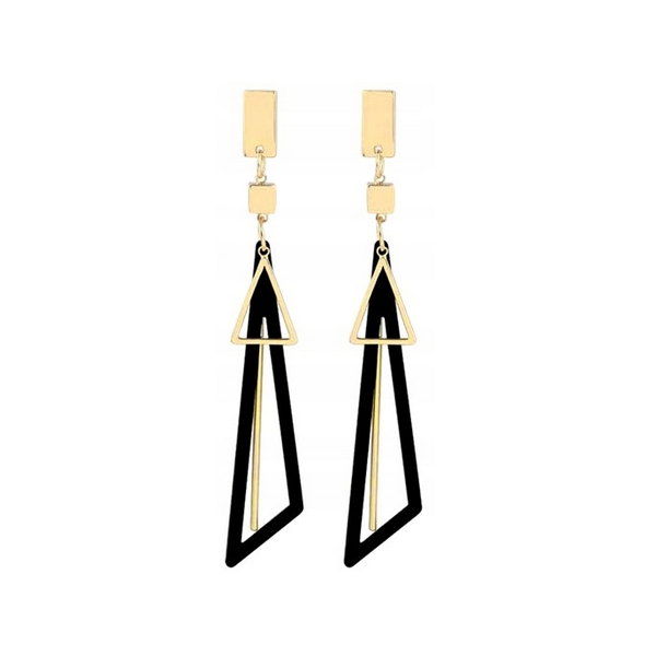 Tieto moderné visiace náušnice v geometrickom štýle pôsobia štýlovo a elegantne. Ich kombinácia zlatej a čiernej farby podčiarkuje originálny dizajn, ktorý perfektne doplní každodenný aj večerný outfit. Vďaka nikel-free zloženiu sú šetrné k pokožke a trojitá galvanizácia zabezpečuje dlhodobý lesk a odolnosť.