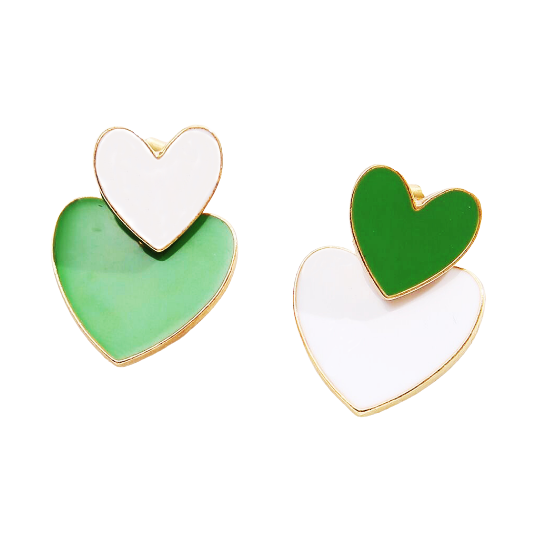 Tieto náušnice v tvare srdca zaujmú svojím dvojfarebným dizajnom, ktorý kombinuje bielu a zelenú farbu. Vďaka svojmu hravému, no elegantnému štýlu sa hodia na bežné nosenie aj špeciálne príležitosti.Šperky neobsahujú nikel, takže nespôsobujú alergie. Trojitá galvanizácia zaisťuje, že náušnice si zachovajú svoj krásny vzhľad dlhšie.