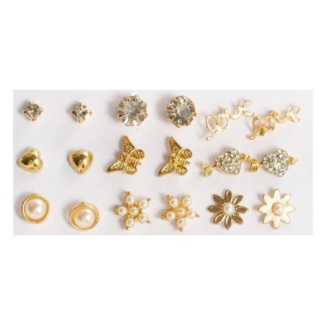 Univerzálna sada 9 párov pozlátených náušníc v rôznych tvaroch a veľkostiach – ideálne na každodenné nosenie aj špeciálne príležitosti.