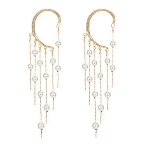 Tieto perlové náušnice vyrobené z hypoalergénneho kovu sú štýlovým šperkom, ktorý kombinuje zlatý lesk s jemnými bielymi perlami. Retiazky s perlami pôsobia ľahko a pohyblivo, čím dodávajú šperku romantický a elegantný vzhľad. Náušnice sú vhodné na každodenné nosenie aj na špeciálne príležitosti.