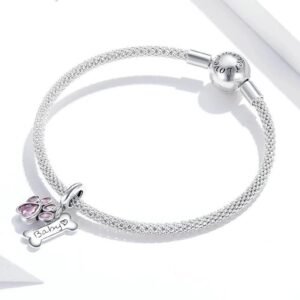 Strieborný prívesok S925 Ružová Labka a Kosť „Baby“