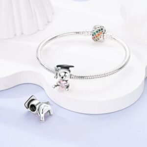 Strieborný prívesok S925 Medveď s Promočnou Čiapkou a Srdcom