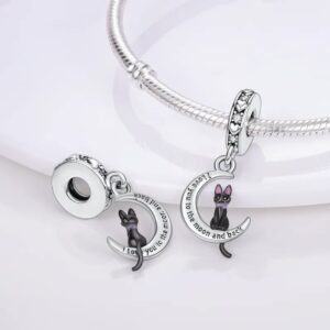 Strieborný prívesok S925 Mačka na Polmesiaci „I love you to the moon and back“