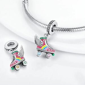 Strieborný prívesok S925 Farebná Koliesková Korčuľa s Krídlami