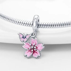 Strieborný prívesok S925 Magnólia a Motýľ