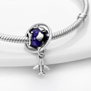 Strieborný prívesok S925 Lietadlo a Modrý Glóbus