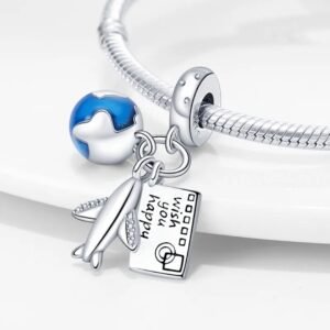Strieborný prívesok S925 Lietadlo, Zem, Pohľadnica