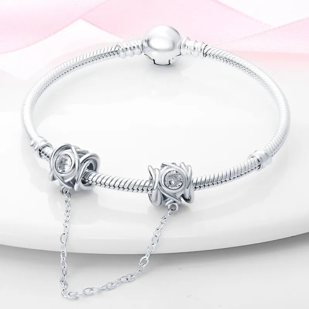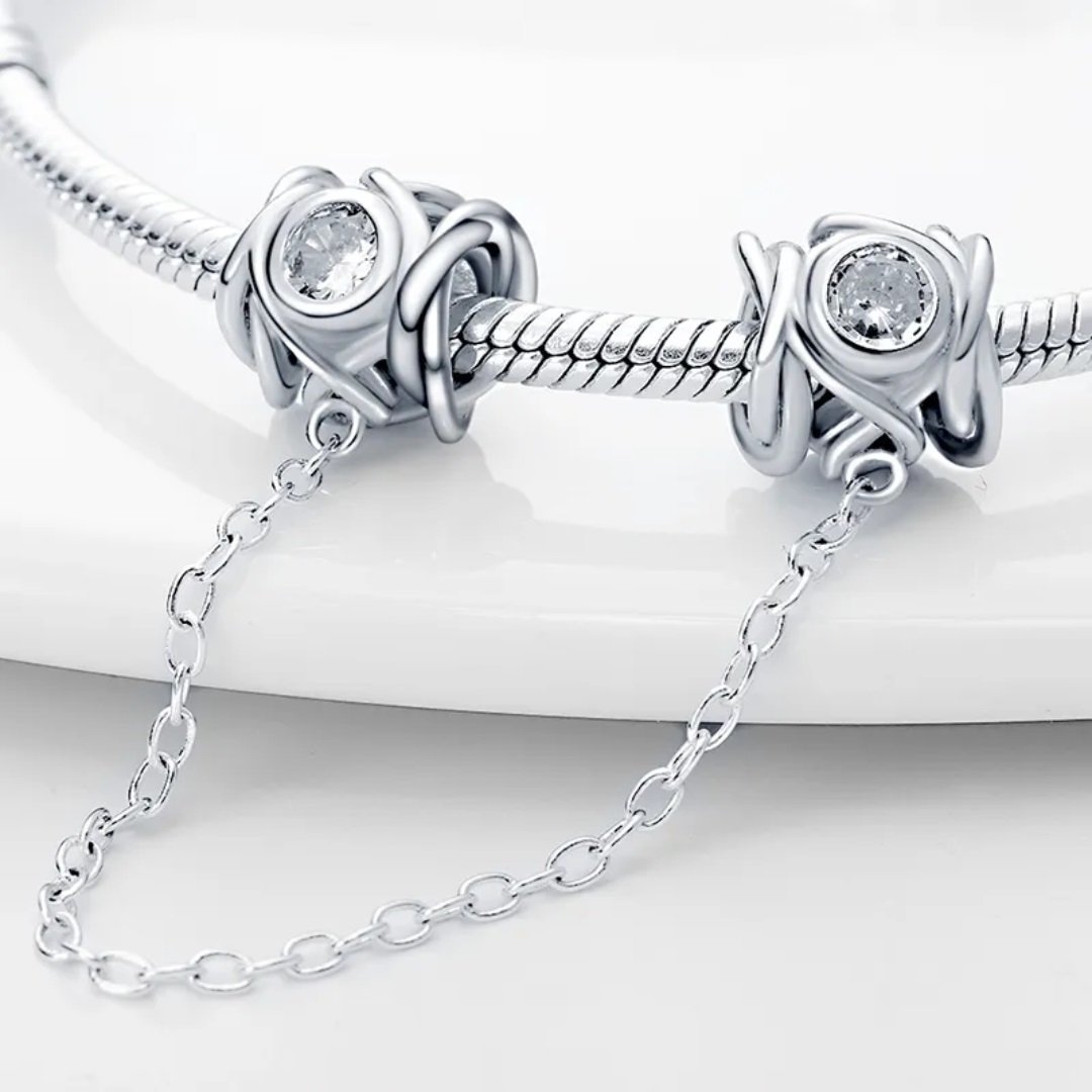 Bezpečnostná retiazka s prelamovaným dizajnom a kubickými zirkónmi je praktický a zároveň elegantný doplnok k modulárnym náramkom, vyrobený zo striebra rýdzosti 925. Jemné trblietavé zirkóny dodávajú šperku luxusný lesk, zatiaľ čo prelamované detaily podčiarkujú moderný a vzdušný dizajn. Hlavnou funkciou bezpečnostnej retiazky je ochrana náramku pred náhodným otvorením alebo stratou, no zároveň slúži aj ako vkusný dekoratívny prvok. Vďaka univerzálnemu prevedeniu je kompatibilná s väčšinou modulárnych náramkov a dodá im osobitý a bezpečný charakter.