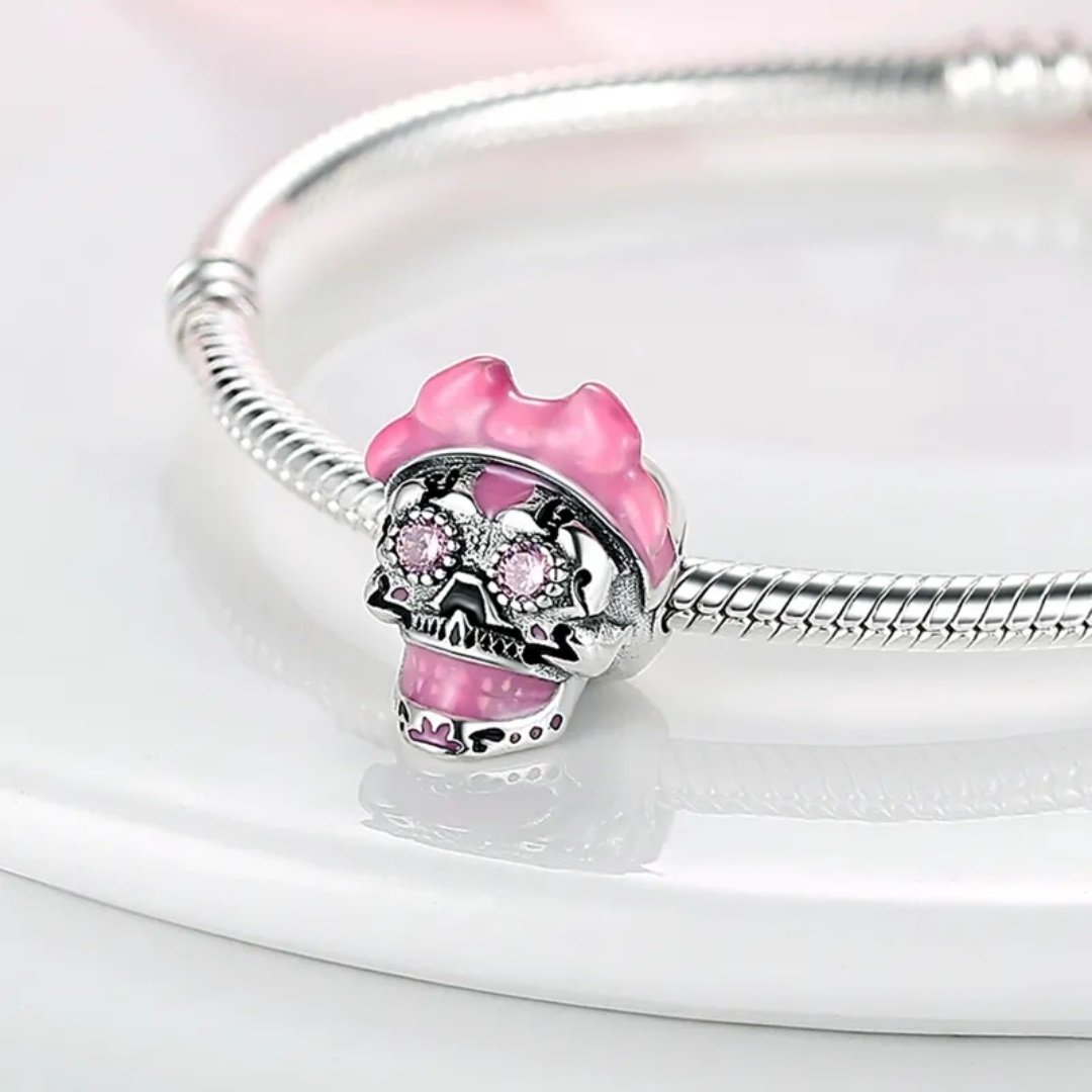 Tento jedinečný prívesok zo striebra rýdzosti 925 púta pozornosť svojím originálnym dizajnom a farebnými detailmi. Strieborná lebka zdobená ružovými kryštálmi a jemnou mašľou vytvára kombináciu hravosti a odvážneho štýlu. Predstavuje symbol individuality, odvahy a osobitého charakteru – ideálny pre ľudí, ktorí radi experimentujú so šperkami a vyhľadávajú výrazné doplnky. Precízne spracovanie zaručuje vysokú kvalitu, odolnosť a dlhotrvajúci lesk. Tento prívesok je skvelým darčekom pre milovníkov neobvyklých a štýlovo prepracovaných šperkov.