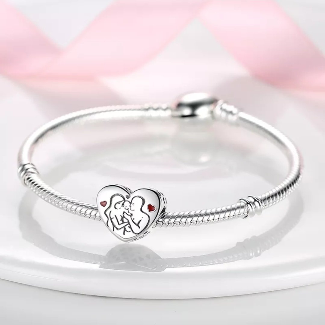 Dojímavý prívesok značky Eurocharms je vyrobený zo striebra rýdzosti S925 a nesie silný symbol lásky a rodinného puta. Predná strana zobrazuje rodičov kolísajúcich svoje dieťa, doplnených červenými srdiečkami, ktoré vyjadrujú nežnosť, ochranu a oddanosť. Na zadnej strane sa nachádza vyrytý citát „Rodina, kde život začína a láska nikdy nekončí“, ktorý podčiarkuje hlboký emocionálny význam šperku. Boky prívesku zdobí jemný prelamovaný vzor srdiečok, ktorý dodáva celému dizajnu romantický a sentimentálny charakter. Prívesok je vhodný pre modulárne náramky so štandardným otvorom a predstavuje ideálny darček pre milovanú osobu pri významných životných udalostiach. Súčasťou balenia je šperková visačka a k dispozícii je aj možnosť darčekového balenia.