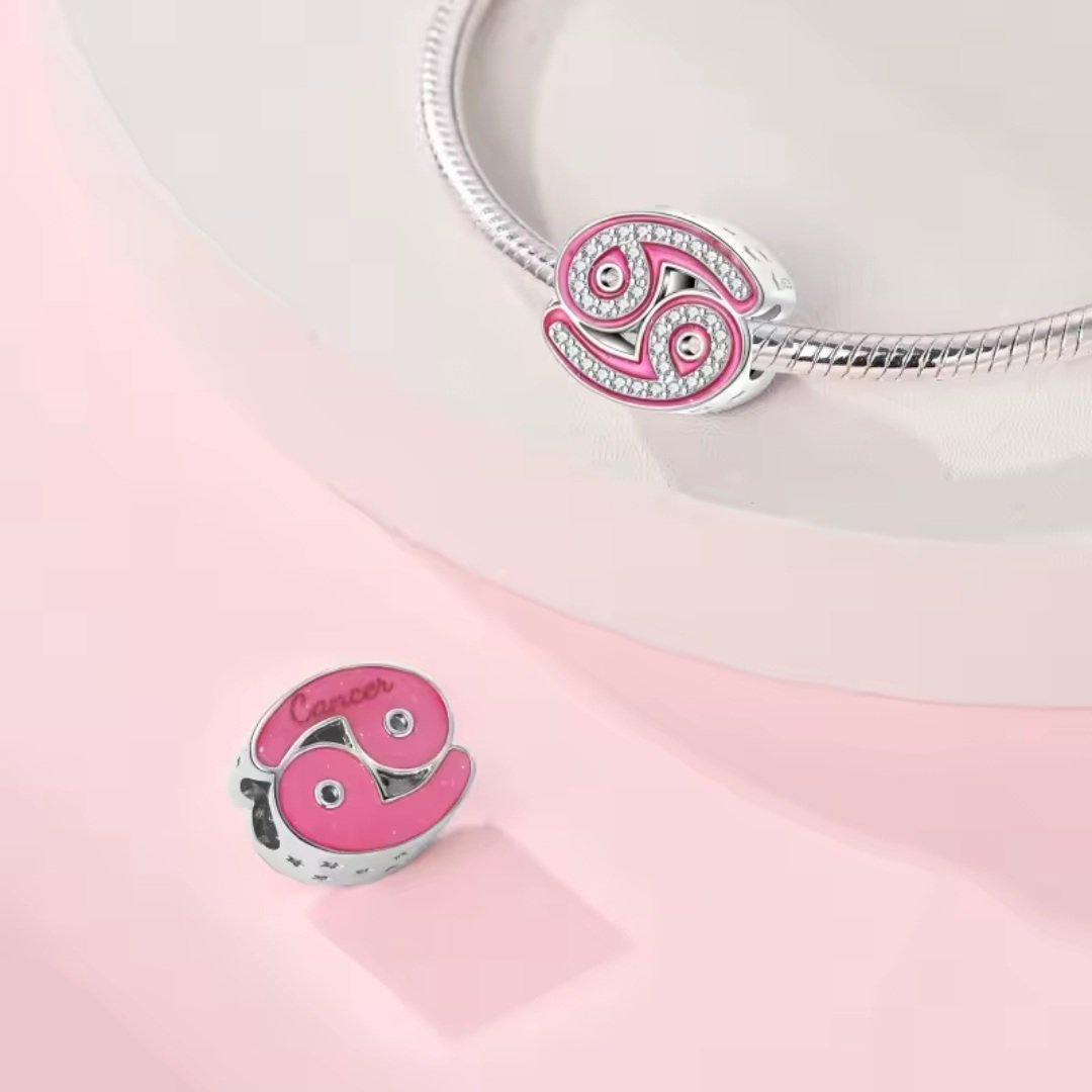 Elegantný prívesok značky Eurocharms predstavuje znamenie zverokruhu Rak a je vyrobený zo striebra rýdzosti S925. Precízne spracovaný symbol Raka je zdobený kontrastom ružového smaltu a žiarivých kubických zirkónov, ktoré v spojení s lesklým strieborným podkladom vytvárajú moderný a elegantný vizuálny efekt. Na zadnej strane sa nachádza jemný nápis „Cancer“, ktorý zvýrazňuje astrologickú symboliku šperku. Motív Raka symbolizuje citlivosť, starostlivosť, ochranu a silné rodinné hodnoty. Prívesok je určený pre modulárne náramky so štandardným otvorom a je ideálnym osobným doplnkom pre ľudí narodených v tomto znamení alebo ako darček pre milovníkov astrológie. Súčasťou balenia je šperková visačka a k dispozícii je aj možnosť darčekového balenia.