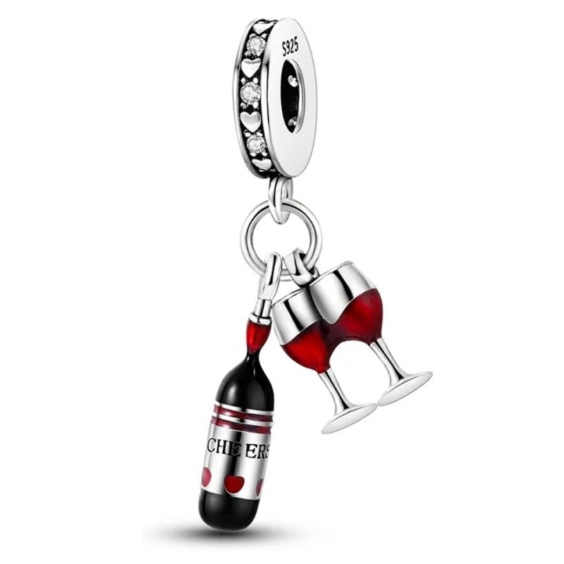 Strieborný prívesok S925 Červené Víno a Dva Poháre