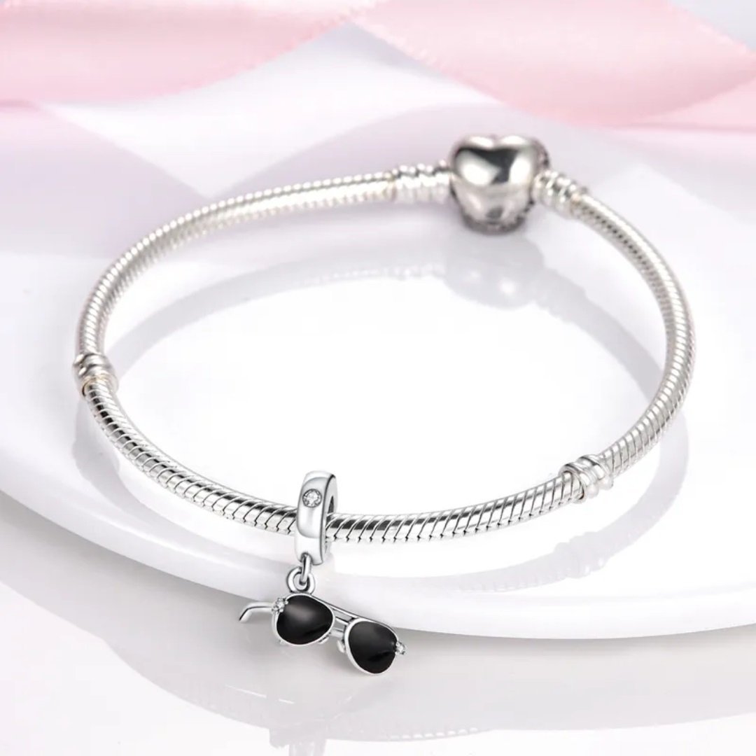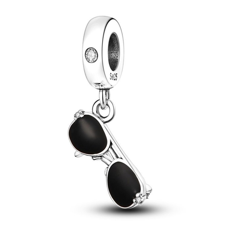 Trendy prívesok v tvare čiernych slnečných okuliarov so zirkónmi – štýlový letný doplnok pre váš modulárny náramok.