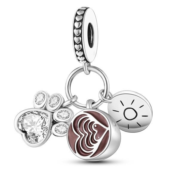 Prívesok Káva, psia labka a slnko je vyrobený zo striebra rýdzosti 925 a predstavuje harmonickú kombináciu troch krásnych motívov. Prvým je srdiečkový kávový symbol, ktorý poteší všetkých milovníkov kávy. Druhým sú psie labky zdobené kryštálom, symbolizujúce náklonnosť k domácim miláčikom.