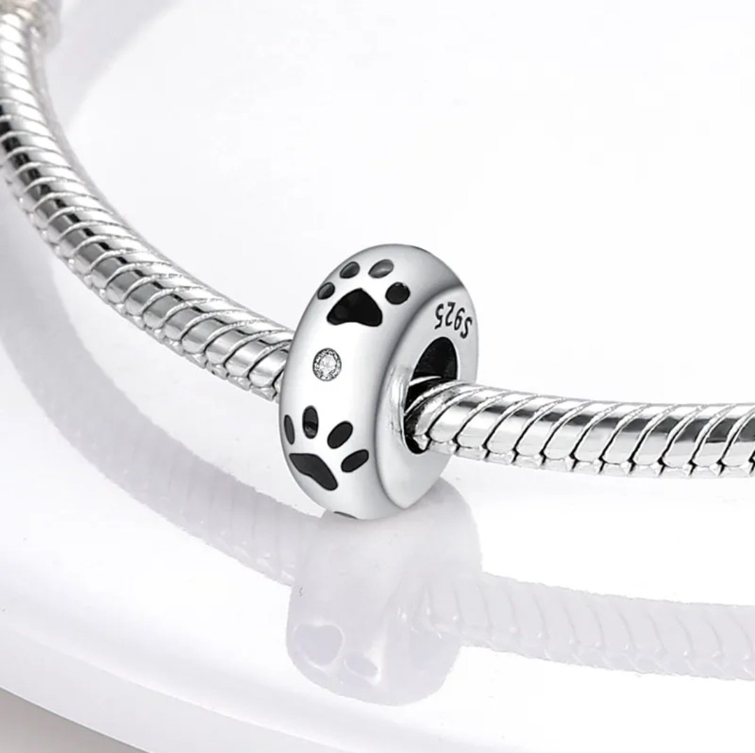 Prívesok Odtlačok labky s kubickým zirkónom je vyrobený z mincového striebra 925. Hladký, zaoblený tvar dopĺňajú čierne stopy labiek, ktoré vytvárajú výrazný kontrast s lesklým povrchom. Drobné číre kamienky kubického zirkónu dodávajú šperku jemný trblietavý efekt.