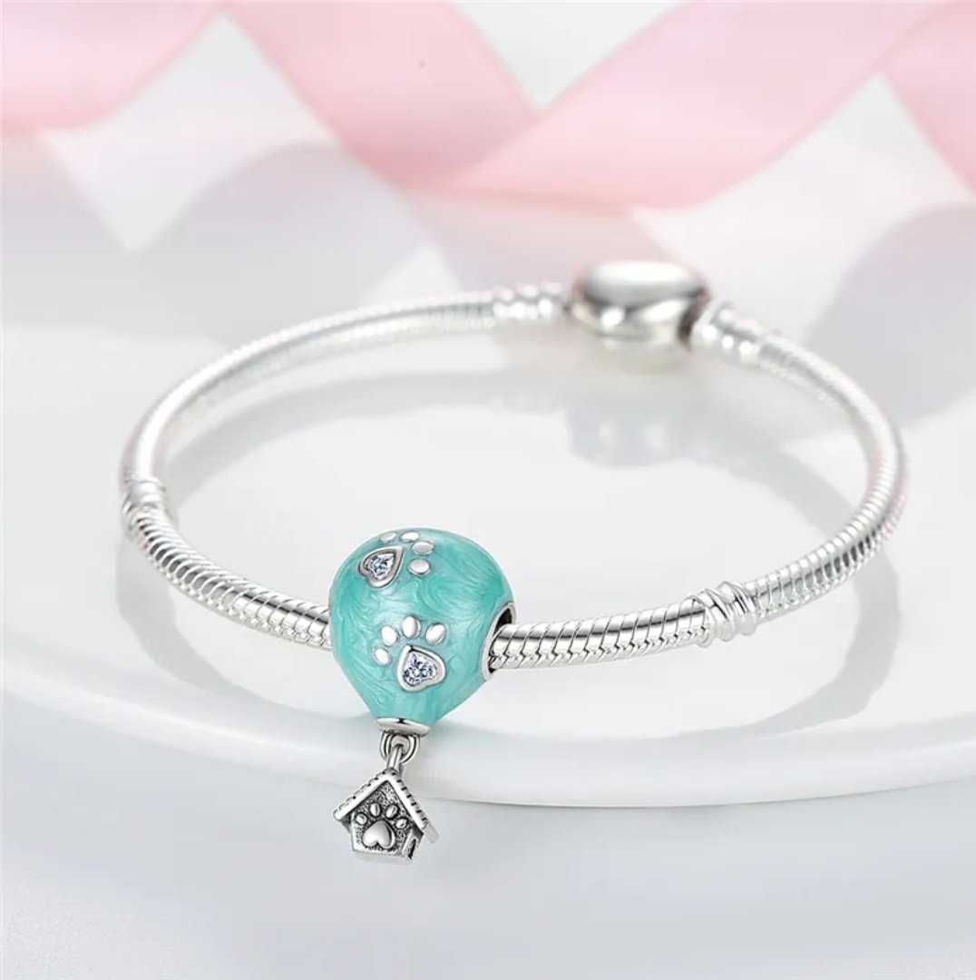 Prívesok Balónik s psou búdou je vyrobený zo striebra rýdzosti 925 a je jedinečným šperkom, ktorý symbolizuje lásku k domácim miláčikom. Tyrkysový balón zdobený bielymi labkami pôsobí veselým a hravým dojmom, zatiaľ čo detailne spracovaná strieborná búda pre psa dopĺňa originálny dizajn. Kubické zirkóny dodávajú prívesku jemný trblietavý akcent a podčiarkujú jeho výnimočný charakter.