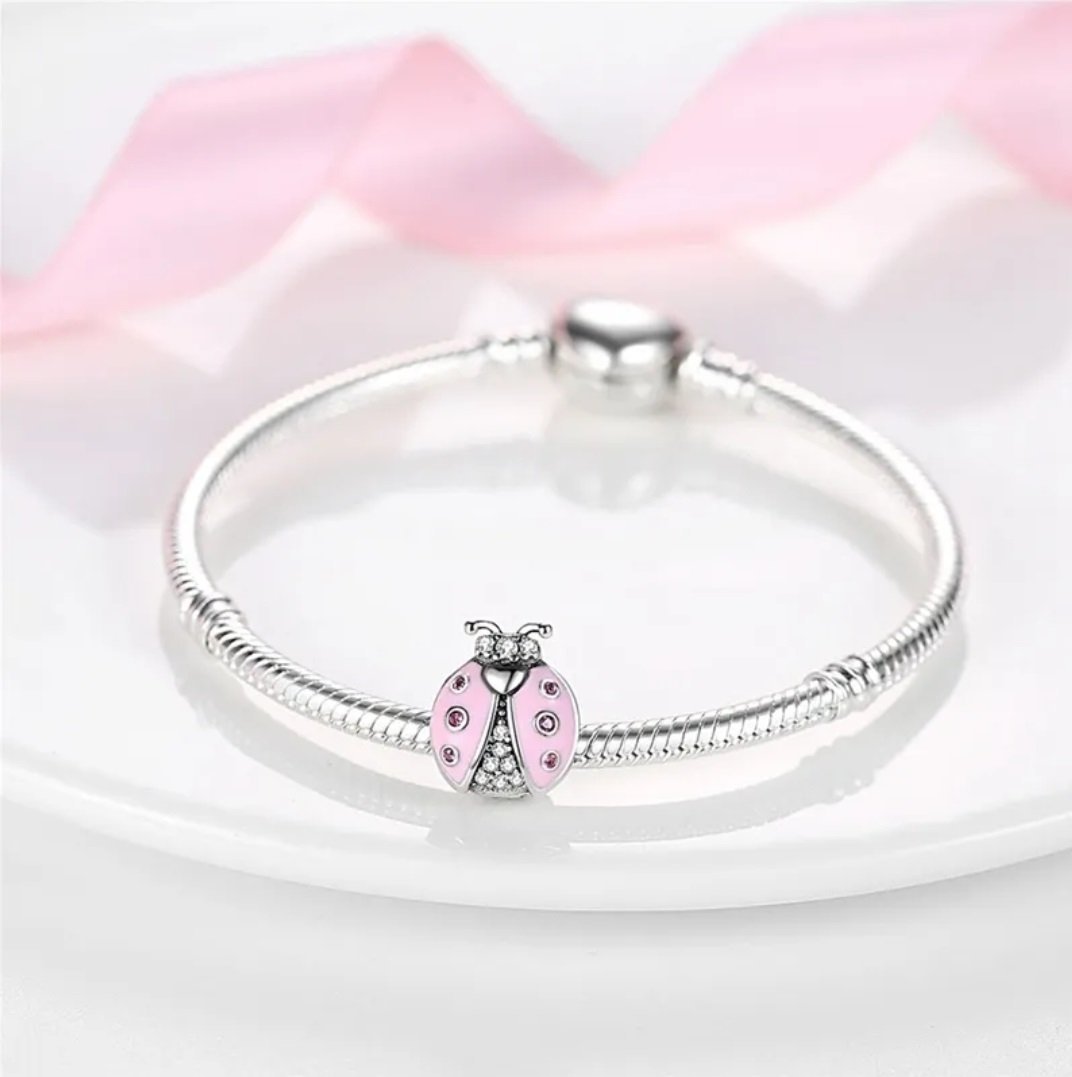 Roztomilý prívesok v tvare lienky vyrobený zo striebra rýdzosti 925 symbolizuje šťastie, prosperitu a pozitívnu energiu. Je zdobený pastelovo ružovým smaltom a trblietavými svetloružovými a čírymi kubickými zirkónmi, ktoré dodávajú šperku vzdušný a hravý vzhľad. Zlatistá korunka s kamienkami zvýrazňuje rozprávkový charakter a robí z prívesku skutočne výnimočný doplnok. Tento kúsok je ideálny pre tých, ktorí majú radi šperky s posolstvom a jemným vzhľadom.