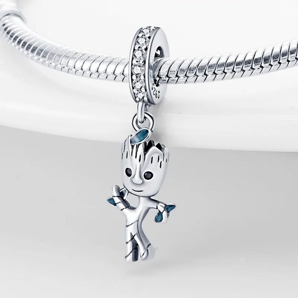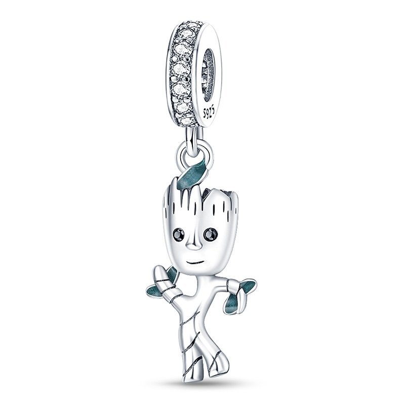 Prívesok Groot predstavuje ikonického hrdinu v podobe rozkošného tancujúceho stvorenia. Vyrobený je z kvalitného striebra rýdzosti 925 a zdobený jemnými detailmi – čiernymi očami, úsmevom a zelenými lístkami vyrastajúcimi z hlavy a rúk.