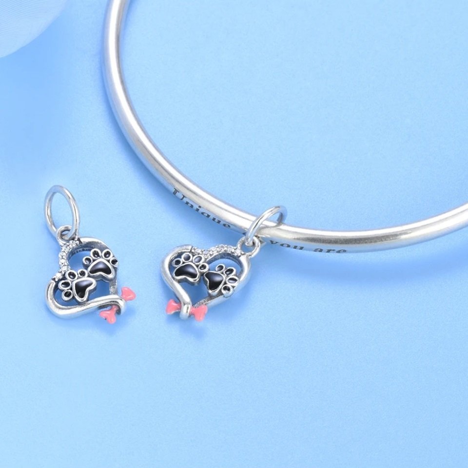 Prívesok Labky je očarujúcim doplnkom k modulárnemu náramku, ktorý je vyrobený z rýdzeho striebra 925. Tento jedinečný šperk v tvare srdca, zdobený čiernymi psími labkami a ružovou kosťou, symbolizuje hlboké puto a lásku k zvieratám. Precízne remeselné spracovanie a jemné kubické zirkóny dodávajú šperku nádych elegancie a trblietavý efekt.