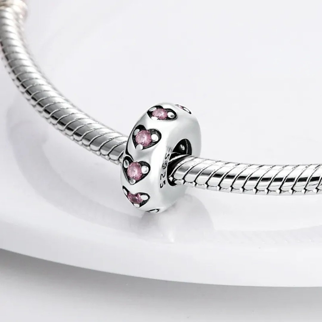 Valcový prívesok je vyrobený z vysoko kvalitného striebra rýdzosti 925 a zdobený jemnými srdiečkami vyplnenými trblietavými, svetloružovými kubickými zirkónmi. Kombinácia lesklého striebra a ružovej farby dodáva šperku romantický nádych a symbolizuje lásku, citlivosť a nežnosť.