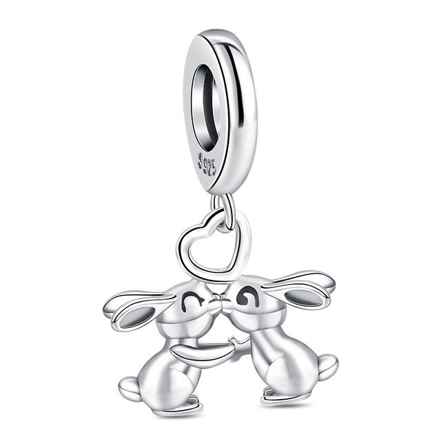 Romantický prívesok so zajačikmi je nežným doplnkom do vašej zbierky. Vyrobený je z kvalitného striebra rýdzosti 925 s elegantným trblietavým povrchom. Dvojica zajačikov spojených srdiečkom symbolizuje lásku, radosť a blízkosť, vďaka čomu je prívesok ideálnym darčekom pre milovanú osobu.