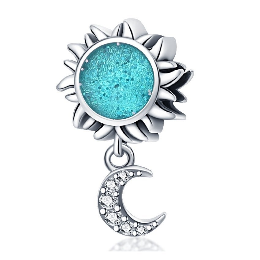 Slnko a Mesiac je symbolickým a žiarivým doplnkom k modulárnemu náramku. Prívesok je vyrobený zo striebra rýdzosti 925 a spája motívy dňa a noci. Slnečný kvet je osadený tyrkysovým kameňom, ktorý vyžaruje sviežosť a energiu, zatiaľ čo visiaci mesiac je zdobený kubickými zirkónmi, ktoré dodávajú šperku eleganciu a jemný lesk. Vďaka spojeniu týchto prvkov prívesok predstavuje harmóniu protikladov a dodáva šperku hlbší význam. Ideálny darček pre tých, ktorí si cenia krásu prírody, vesmíru a originálne šperky.